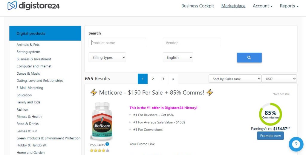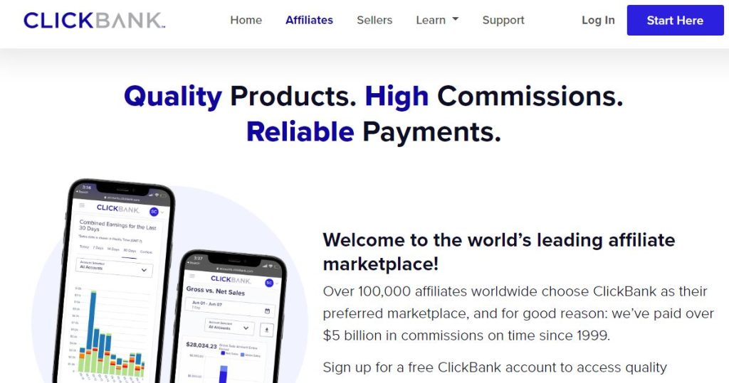 Clickbank has over 4000+ advertisers. Their platform majorly focuses on digital products which are created by Entrepreneurs around the world. Clickbank has a wide range of product categories to choose from weight loss products , Online Courses, events and so on.