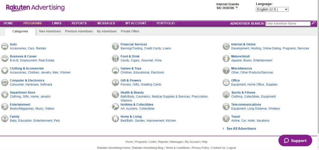 Rakuten majorly focuses on physical products. It’s mostly considered as one of the best alternatives to Amazon associates together with the Walmart affiliate network.
