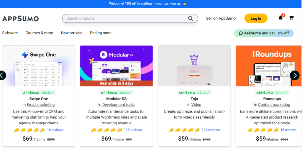 - Lifetime deals on software products